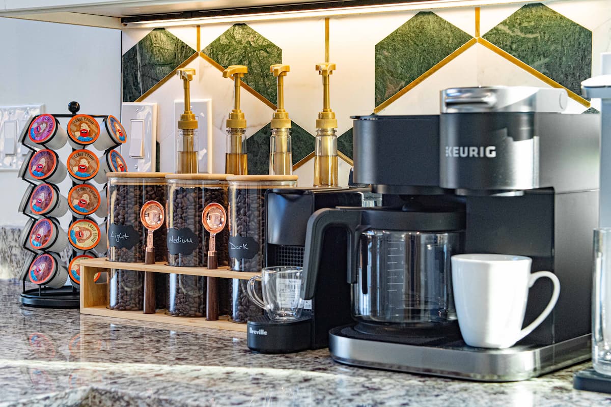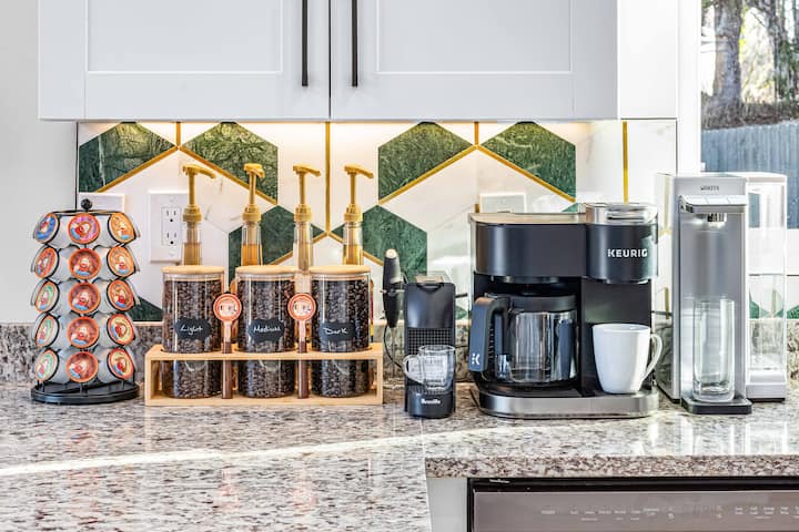 ☕ Loaded kitchen, coffee/tea bar & flavored syrups