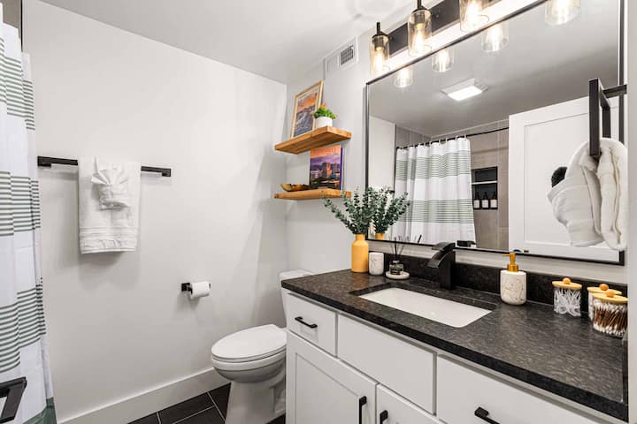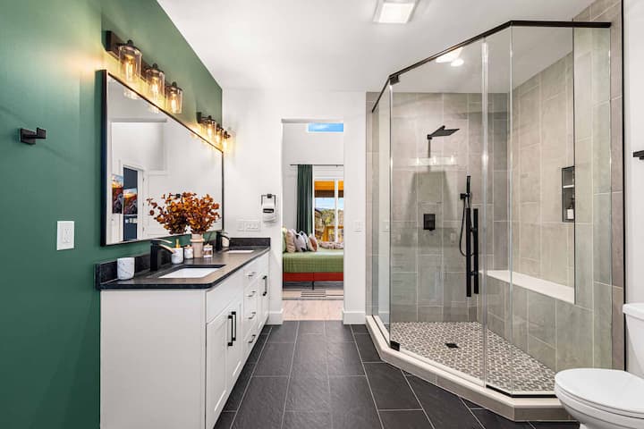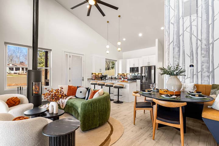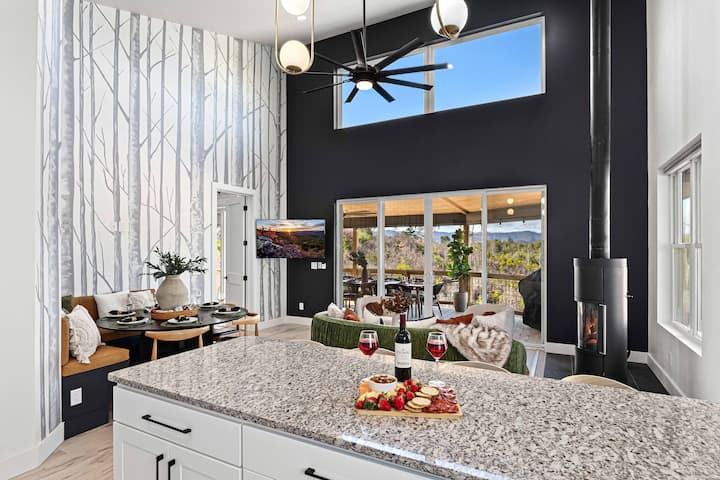This professionally designed home is ramp accesible for all generations and ready for fun and comfort. Everview's chef ready kitchen makes your next holiday a breeze with fully stocked coffe bar, waffle iron and so much more. If cooking isn't your jam, don't forget the famous Asheville restaurant scene is just minutes way.