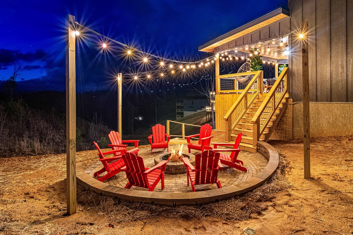 Gather 'round the fire pit, seats 7, for s'mores, tall tales and mountain views. The spot to create cherished memories under the starry North Carolina sky.