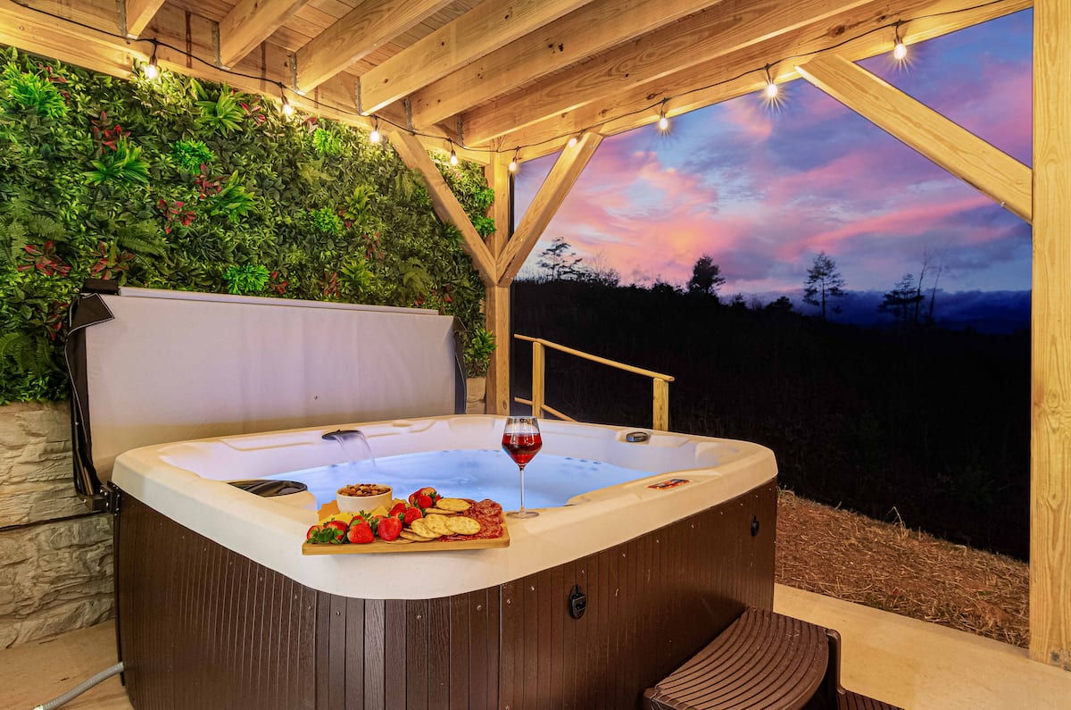 Indulge in relaxation in the private hot tub, letting the bubbling water wash away your cares.